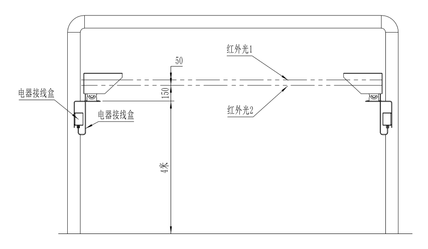 红外光束(不可见光)为警戒线。当有超过限制高度的车辆通过时,当行驶车辆触碰光电信号时,