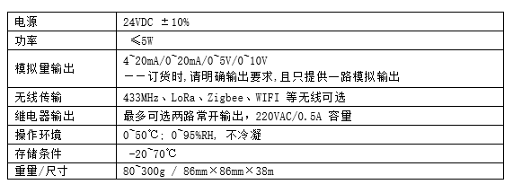 4、产品可提供4~20mA、0~10V模拟量输出和RS485输出选项;也可内嵌物联网无线模块,方便接入云平台。