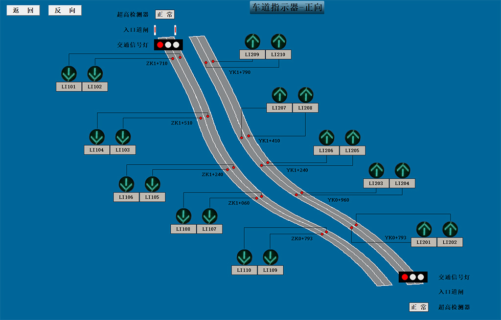 二、控制 通过在隧道内安装光线传感器感应隧道内的光照情况,根据每个位置的不同,所测量的光照度也不同,系统根据每个位置的能见度情况,自动调整每个照明灯的光线,从而来满足隧道内的光 照满足标准。通过烟雾探测器实时监测隧道内是否发生火灾,当有发现有火灾发生时,根据烟雾浓度自动开启消防系统以及通风系统,通过消防喷淋系统进行及时灭火;通风系统会在隧道内有 害气体浓度超标,含氧量过少时自动开启通风系统,进行排气换风处理,从而来保证隧道内的空气能满足要求。 |